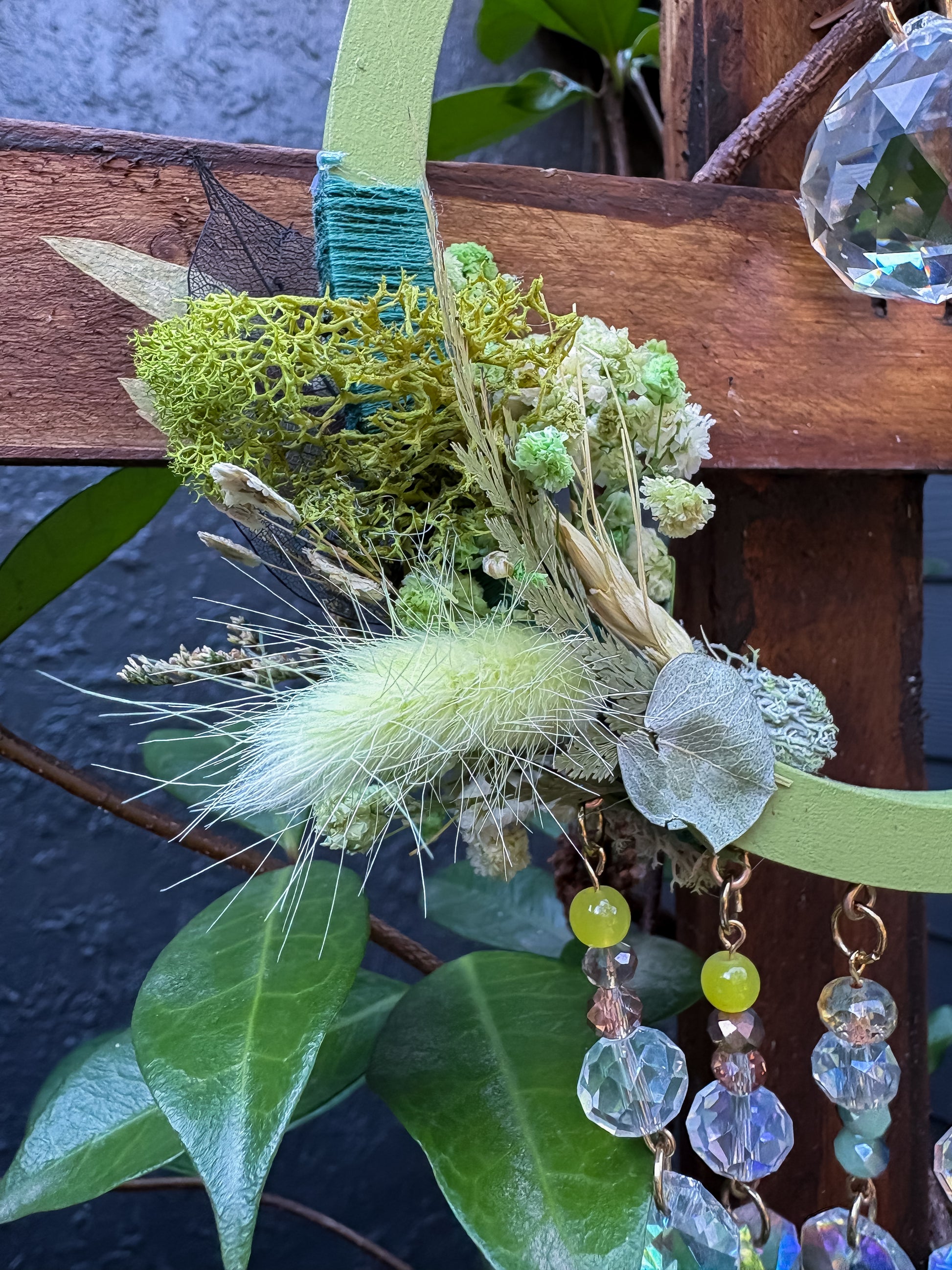 Unique 6” Suncatcher wreath with real preserved flowers.