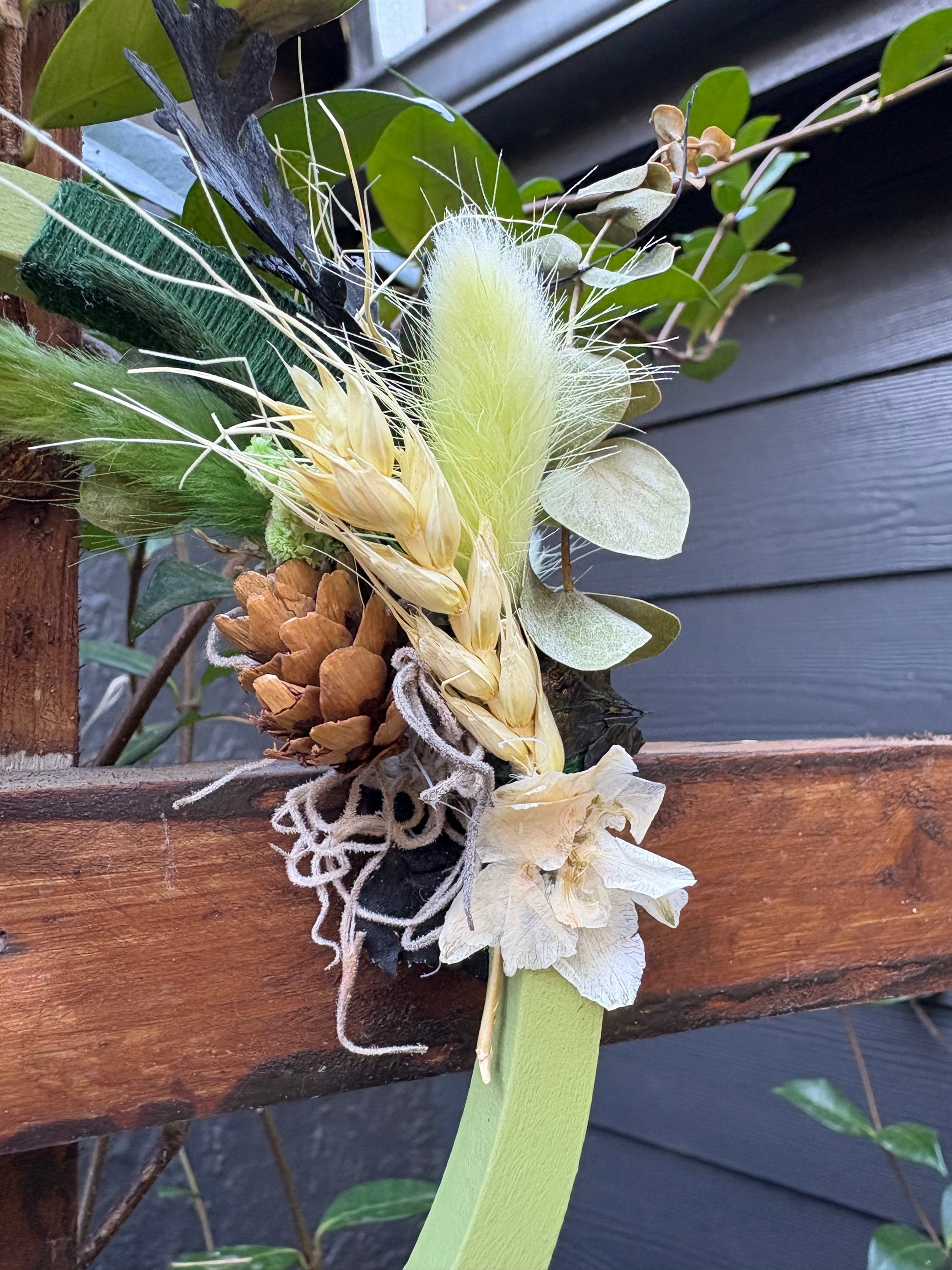 This 6” Suncatcher Wreath features carefully preserved flowers arranged to capture and reflect natural light beautifully. Each wreath is uniquely handcrafted, ensuring a one-of-a-kind decorative accent that adds subtle elegance to any space. Its preserved blooms require no maintenance, providing lasting color and charm while enhancing room ambiance with gentle sunlight reflections. Ideal for distinctive home décor or thoughtful gifting, this suncatcher wreath combines artistry with enduring natural beauty.